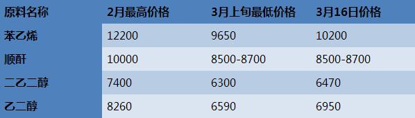 原油反弹走高,国内苯乙烯企业逐渐止跌,电子盘稳中整理上扬,华东地区报盘涨至10300元/吨;随着环保检查结束,河北、天津地区树脂厂陆续开工,需求面好转也促使顺酐价格暂时止跌,且局部有小幅探涨迹象,成本面趋稳,不饱和树脂市场观望气氛加重,工厂报价暂时守稳。