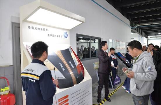 众所周知,非标准的维修工艺对车辆修复后的安全性及驾乘人生命安全造成极大威胁,不容忽视。本次签约活动中,4位锦江店资深技师带领现场来宾参观德国大众认证标准ADM钣喷样板店的标准设施,并现场阐述标准维修的重要性及其对车身安全的影响。