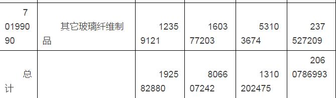 玻璃纤维粗纱进口量2.33万吨,同比减少59.83%,进口均价857美元/吨,同比降低29.84%
