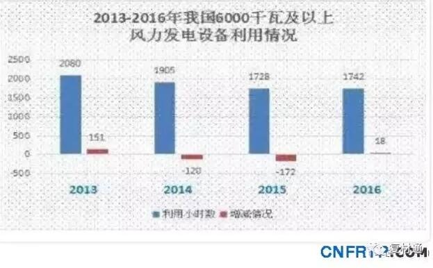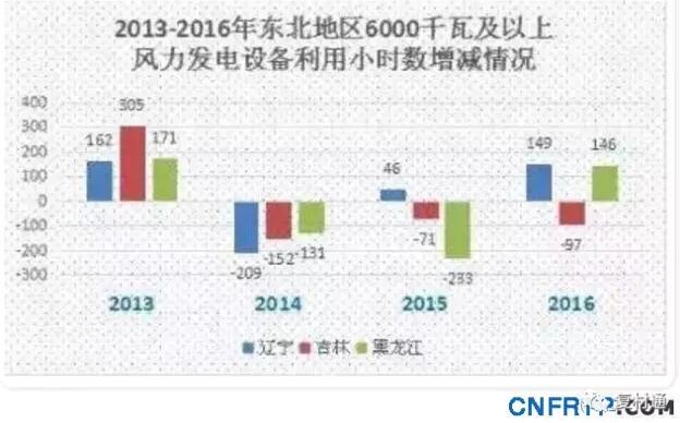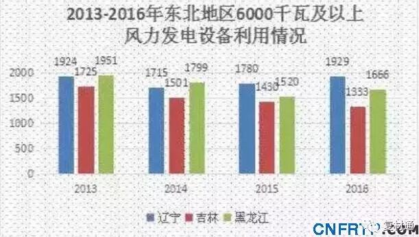 综合数据显示,2016年风电消纳状况明显优于2015年,除吉林外,辽宁、黑龙江风电设备平均利用小时数均有一定幅度的提升,辽宁省风电设备平均利用小时数高达1929小时,高于平均水平。