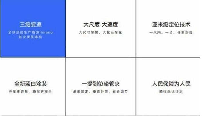 3月15日起,款内置禧玛诺内三速变速器的bluegogo pro在6个运营城市相继亮相。 在bluegogo Pro上,小蓝单车搭载了入门级专业内变速,为用户在城市的复杂道路情况提供了三种选择。其中轻踏挡踩踏力度变轻27%,轻松应对爬坡、逆风等路况。标准档兼具好骑与速度适合于一般骑行。而在追求运动感的用户方面bluegogo Pro提供了快速挡,在同样的踩踏效率下,速度提升37%。