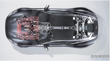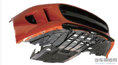 捷豹F 型保险杠和车身底板组件俯视图。所有部件由POLYTEC 公司的不同业务部门采用不同的技术生产(图片由POLYTEC 集团提供)。