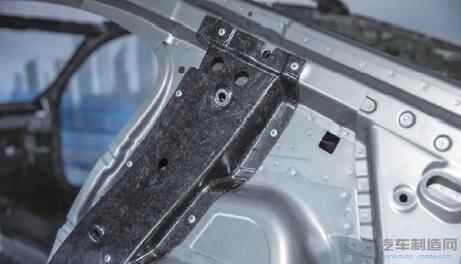 宝马7 系列的碳纤维片状模塑料增强C 柱(图片由宝马公司提供)。