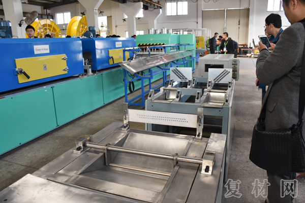 3月31日上午,复合材料拉挤与缠绕成型工艺专题会议参会代表前往参观南京诺尔泰复合材料设备制造有限公司生产线、北京京华派克聚合机械设备有限公司注胶机现场演示,复材网作为媒体单位随行参加参观活动。