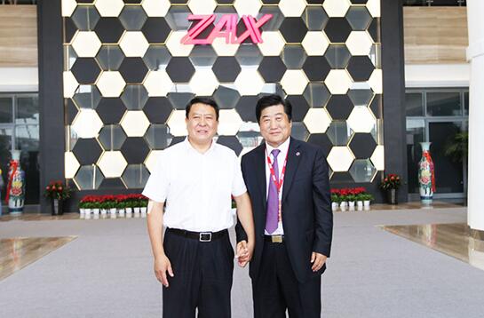 上图:北京汽车集团有限公司党委书记、董事长徐和谊(左)与康得集团、康得新集团钟玉董事长(右)合影