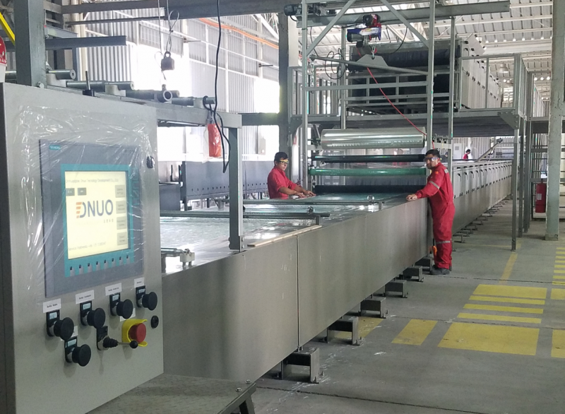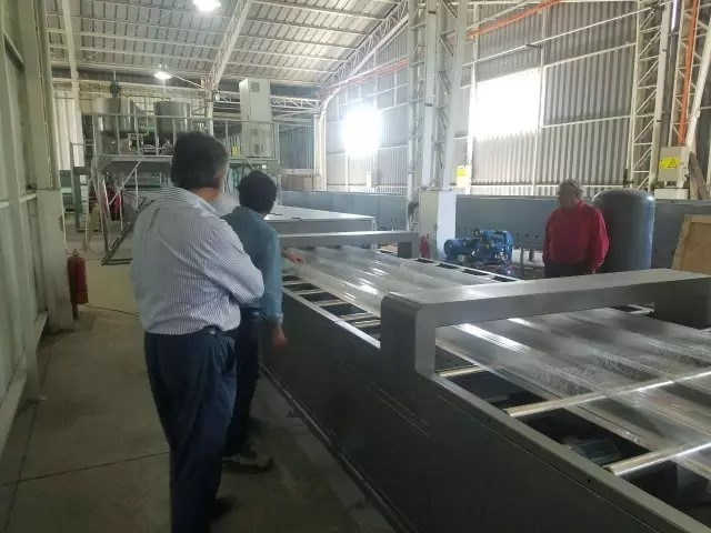 迪诺以的设备,一流的服务回报客户的信任。2017年初中亚吉尔吉斯斯坦客户在迪诺科技引进一套FRP采光瓦生产线,3月末完成安装与调试,正式开始板材的生产;2017年3月由迪诺科技制造的智能型FRP生产设备已装车发往孟加拉大的FRP生产厂家,将于5月份完成安装调试。