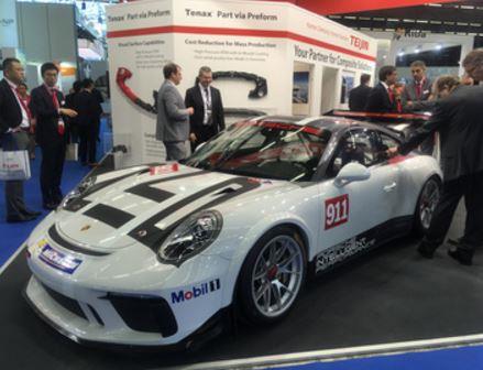 这是在德国Heinsberg,通过Tenax®Part via Preform(PvP)技术生产的个汽车零部件,直接供应给OEM。在帝人集团内,Toho Tenax正在通过整合先进的复合技术,逐步建立专门的帝人复合材料业务部门,扩大其复合材料业务。保时捷GT3杯II在2017年JEC复材展中的帝人展台上展出。