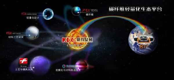 在此背景下,国内涌现出以康得集团、康得新集团为代表的企业,整合优势资源,打造了唯一的碳纤维轻量化生态平台,包括:中安信科技有限公司,KDX雷丁汽车轻量化设计中心,位于慕尼黑的KDX欧洲复合材料研发中心,以及大批量自动化生产技术支持的德国GFG和SGL公司,康得复材工业4.0版智能化工厂;与此同时,生态平台还实现了从设计、研发、碳纤维及部件柔性制造全过程的信息化,形成了碳纤维车体工业4.0智能制造平台, 具备了碳纤维及部件生产规模化;客户需求个性定制化;产品设计、研发、制造、检测及物流等全生命周期智能化;供应链、客户协同网络化的能力。