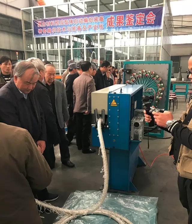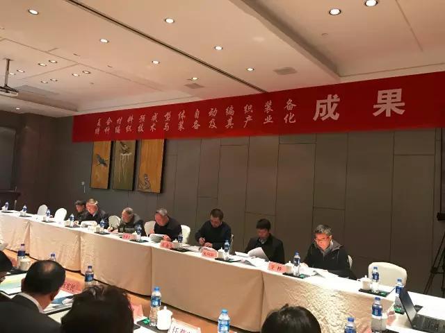 2017年4月10日-11日,受纺织工业联合会委托,纺织机械协会在徐州主持召开了东华大学和徐州恒辉编织机械有限公司联合承担的纺织工业联合会科技指导性项目“复合材料预成型体自动编织装备”(编号2015140)和“特种编织技术与装备及其产业化”(编号2015141)成果鉴定会。鉴定委员会由上海大学孙晋良院士、仪征化纤股份有限公司蒋士成院士担任正副主任的7位专家组成。