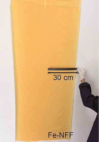 该团队用静电纺丝技术制造的180 x 80厘米碳纳米纤维薄膜
