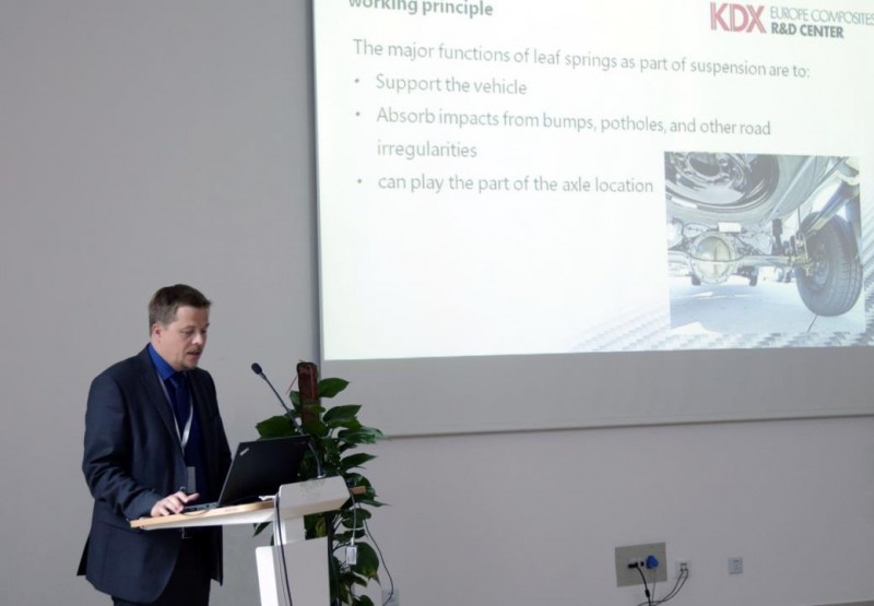 Thomas Staffenberger博士为参会人员详细讲解了复合材料板簧的应用现状、开发理念及开发过程。目前复合材料板簧已经在欧洲乘用车及商用车上得以广泛应用,备受汽车主机厂关注,但国内缺乏相应的开发经验以及开发资源。康得在汽车板簧开发、测试、样件及量产制造上拥有丰富的经验,可以同主机厂展开多方位的合作。