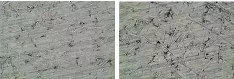 改性后(左)与未改性(右)材料表面浮纤情况