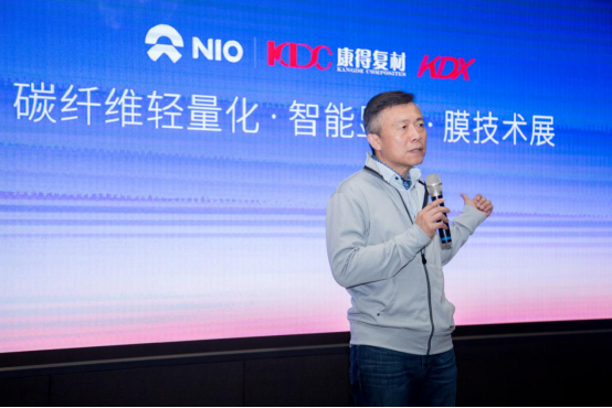 李斌董事长先致辞,他表示汽车行业正在发生深刻的改变,每个人都认为电动、智能、联网理所当然是汽车的未来,此次与碳纤维轻量化领军企业康得复材联手,蔚来实现了新材料布局,向提供高性能智能电动汽车与极致用户体验的愿景又迈进了一步。