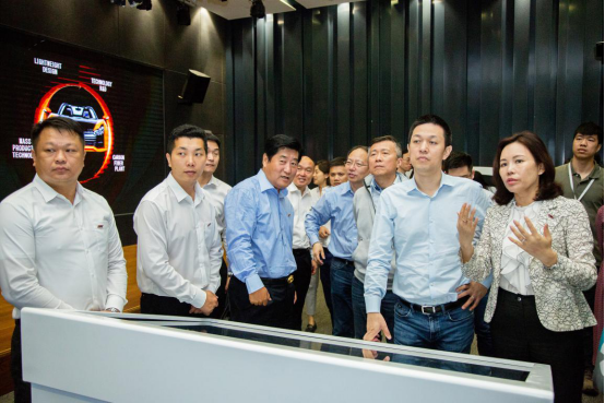 李斌董事长及蔚来团队体验康得新用于汽车展示的裸眼3D与大屏触控交互方案