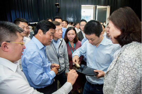 致辞环节结束后,蔚来董事长李斌带领高管团队参观了技术展上陈列的各类展品,双方就未来合作进行了卓有成效的交流。蔚来团队饶有兴趣地体验了康得新的汽车智能显示产品和低碳化膜材料产品,对康得新的创新能力给予高度评价,认为这些新兴技术将引领智能电动汽车的发展,双方当即确定业务对接负责人,落实后续的应用合作计划。