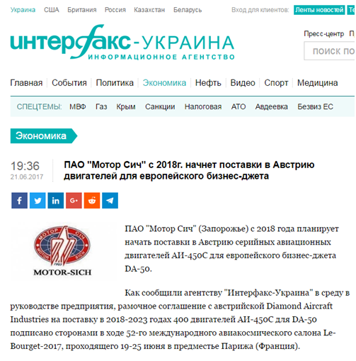 根据国际文传电讯社报道,马达西奇公司将在今年年底前与奥地利钻石公司签署框架协议,于2018年至2023年为DA-50公务机提供400台AI-450S发动机。