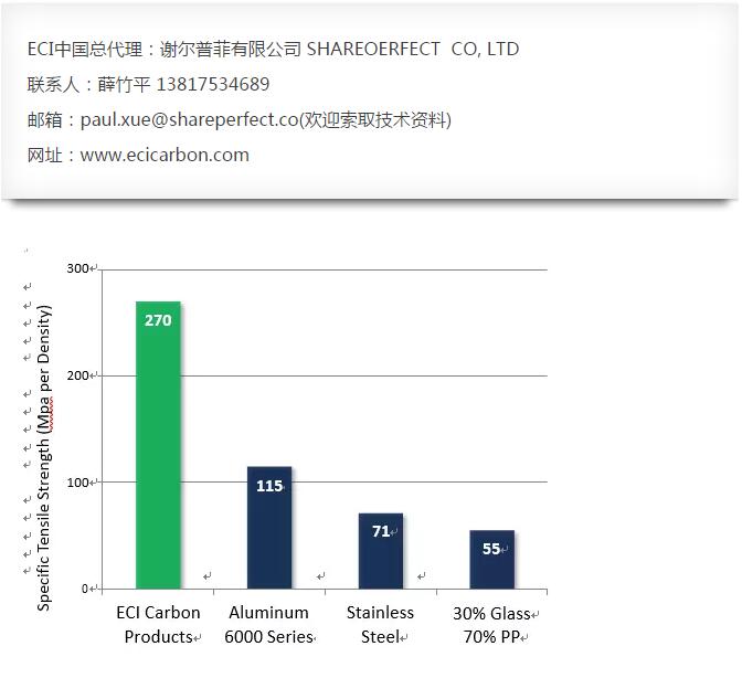 ECI进入市场的杀手锏是公司具价值的轻量化旗舰产品--APEXTM层压板碳纤维。ECI的工程师为战斗机、直升机的火箭发动机等应用开发了航天复合材料,APEXTM层压板碳纤维则采取同样的尖端技术,使得其性能和经济大化,它各向同性的优异性也来源于此。同时,APEXTM碳纤维采用高性价比高抗冲击热塑性树脂,解决了碳纤维易碎的缺点。除此之外,它还具有具有高比强度、质轻、防腐、极好的冲击性能、极好的导电导热性能(电阻到达0.006欧姆)、低成本、高生产效率(适合模压工艺和吸塑工艺 2-5分钟可以生产一个产品无废料!)、环保可回收循环使用、成本经济等诸多优点。为重要的是,APEXTM碳纤维通过了ISO9001:2008制造和质量体系高标准认证。稳定的质量是为客户创造安全和价值的可靠的保证。