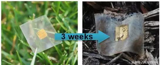 将纤维素纳米纤维膜制作的电脑芯片放入木堆,3周后,它在菌类的作用下分解(图片来源:Jung-Hun Seo,美国威斯康星大学麦迪逊分校)