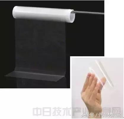 早在2012年秋季,王子制纸与京都大学教授矢野浩之等人合作,已经开发出了一种新型纤维素CNF含量在10%以上的新型透明树脂。在对纸浆做脱水处理的过程中,增加防止纤维素纳米纤维之间凝聚的手段,并使丙烯树脂浸渗在纤维间,从而实现透明化。由此制造出的透明片材,其厚度为100μm,光透过率为 87.8%。20~150℃下的线热膨胀系数为 8.30×10-6K-1 。线性热膨胀系数的数值仅为 PET片材的 1/3 左右,接近玻璃。这种透明片材有望用作透明有机 EL 基板、有机薄膜太阳能电池基板、电子纸、汽车车窗材料及包装容器等。因为积极推动新型材料纤维素钠米纤维的研究开发,并引导该研究实际应用,矢野浩之教授荣获2016年本田奖。