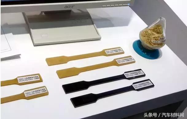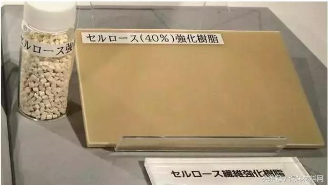 2015年8月,在日本第四届塑料展会上,大赛璐塑料(Daicel Polymer)展示了一种100%来源于植物资源的复合材料,这种材料由生物质聚酰PA1010和纤维素纤维混合而成,拉伸强度高于100MPa,弯曲模量高于5GPa,简支梁冲击强度大约为44kJ/m2, 而另外一种用30%纤维素纤维增强的PP复合材料,拉伸强度高达120MPa,弯曲模量5.5GPa,简支梁冲击强度达到50kJ/m2。所用的纤维是Daicel开发的高强度,高长径比纤维素纤维。这两种复合材料可以完全取代汽车结构件中的玻璃纤维增强材料,使汽车更加轻量化。