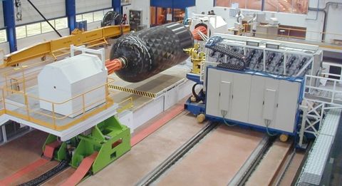 将经过树脂胶液浸渍的连续纤维或布带按一定规律缠绕到芯模上,然后固化、脱模成为复合材料制品的工艺。碳纤维缠绕成型可充分发挥其高比强度、高比模量以及低密度的特点,可用于制造圆柱体、球体及某些正曲率回转体或筒形碳纤维制品。