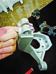 用新型陶铝材料制造的新能源汽车转向节,一根食指便能挑起。 徐瑞哲 摄、