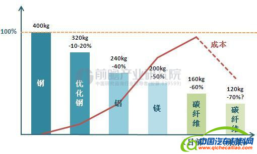 图表2:不同材料轻量化潜力对比