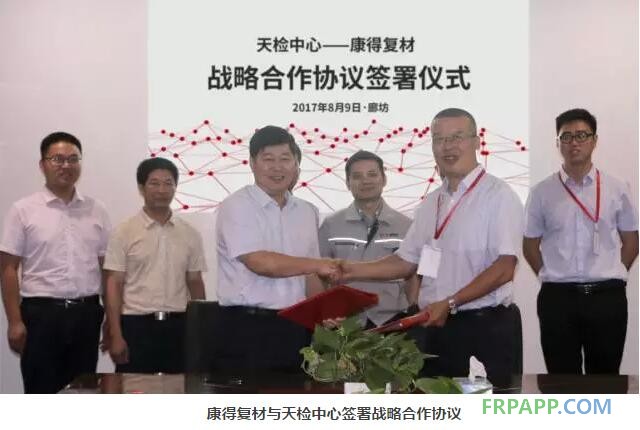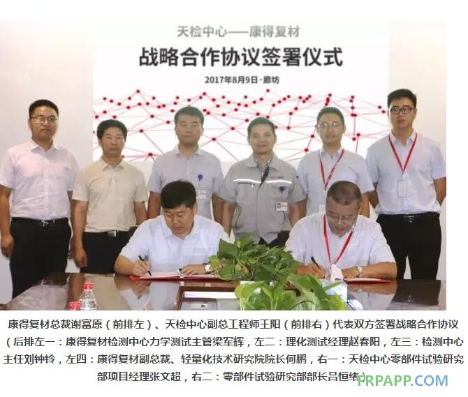 随后,康得复材总裁谢富原和天检中心副总工程师王阳代表双方签署战略合作协议,双方约定将在碳纤维复合材料、部件检测,碳纤维标准研究,科研项目,合作推广等方面开展全面合作,构建战略合作伙伴关系,实现生产企业与检测企业的深度研究与合作。