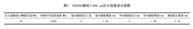 采用T800SC-24K预浸带成型标准φ 480 mm压力容器工艺设计参数,见表5。