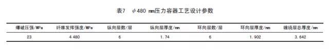 采用T800SC-24K预浸带成型加长φ 480 mm压力容器工艺设计参数,见表7。