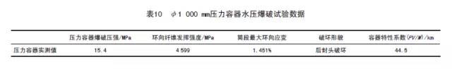 根据表7工艺设计参数,成型的加长φ 480mm压力容器水压爆破情况见表8和图3。