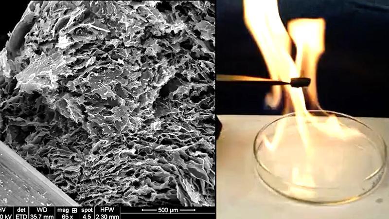 这种轻质、高强和极具减震性能的材料,有望使得复合材料成为柔性电子器件和大型应变传感器的良好基材。它同时还具有很高的电导率,是一种极佳的绝热材料,可用作阻燃、隔热涂层以及将热量转换成电能的传感器和设备。