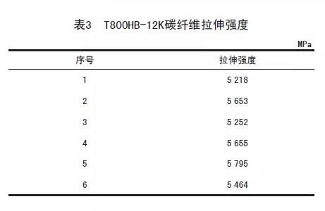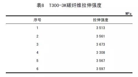 如表8,即为T300-3K的拉伸强度数据,将6 组数据取平均值为3 520 MPa,该值即为终T300-3K的拉伸强度值;同理如表9~10所示,取平均值后T800HB-12K的终拉伸强度值为3520 MPa;T700S-12K的终拉伸强度值为T700S-12K。