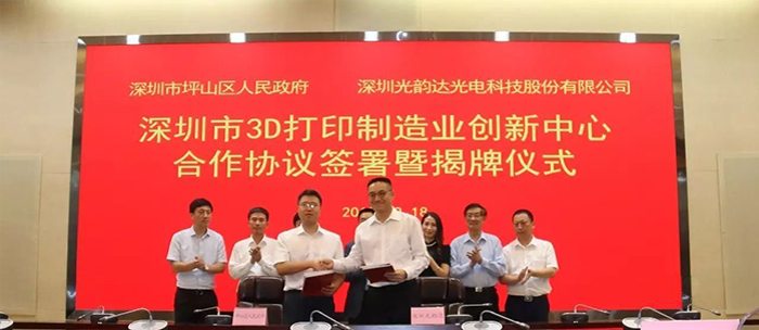 该中心由深圳光韵达光电科技股份有限公司牵头建立,联合大学、产业链上中下游企业等50余家单位,打造“政-产-学-研-用-资”一体化的3D打印研究创新平台,贯穿自产品设计、3D打印设备、材料研发到3D打印应用服务的全产业链,推动3D打印产业规范、快速、健康发展,对形成具有深圳区域特色的3D打印创新基地具有重大意义。