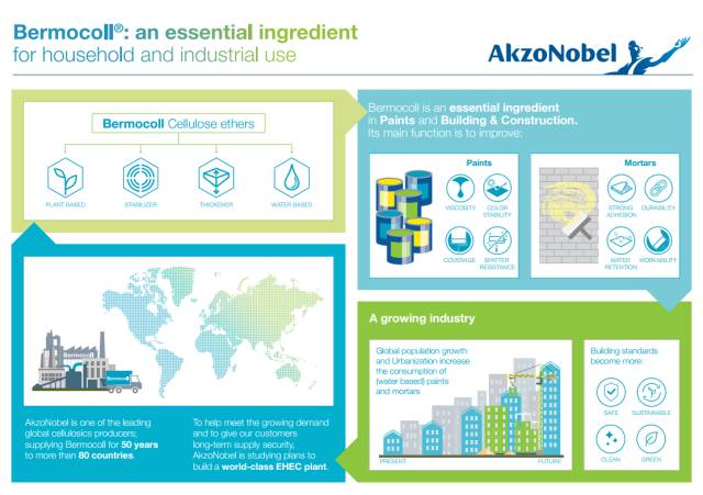 9月21日,阿克苏诺贝尔宣布其特种化学品业务正在研究为其Bermocoll®业务建立一流工厂的计划,该业务为油漆和建筑行业提供必要的成分。