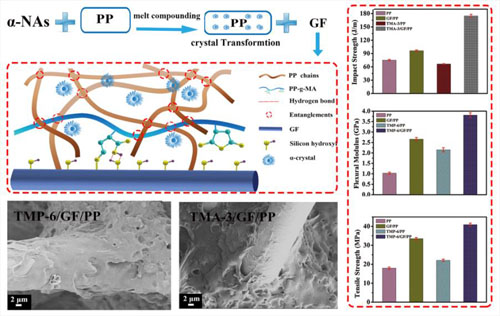 α系列成核剂改性与玻璃纤维增强相结合制备新型聚丙烯复合材料示意图