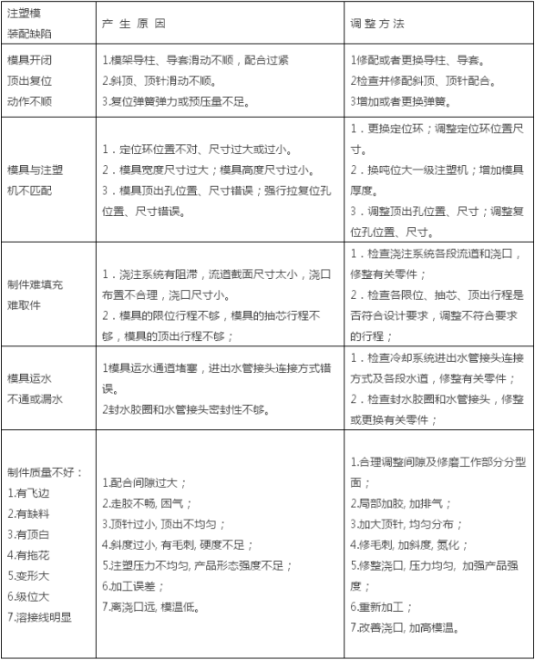 注塑模具常见缺陷及其调整方法