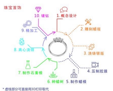 一直以来,3D打印技术都能够在艺术领域给予无限的创造力。在传统工艺中,往往饰工匠需要参照设计图纸手工雕刻出蜡版,再利用失蜡浇铸的方法倒出银版,并利用金属版压制胶膜并批量生产蜡模,后使用蜡模进行浇铸,得到饰的毛胚。这些工艺完全依赖于工匠的水平,并且修改设计也相当繁琐,不仅费时费力,而且人工成本极高。