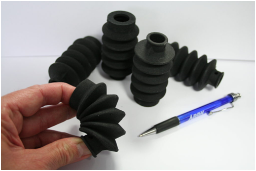 DuraForm Flex Black提供50和60之间的肖氏硬度,非常适合生产软管、风箱或有弹性橡胶连接的部件。