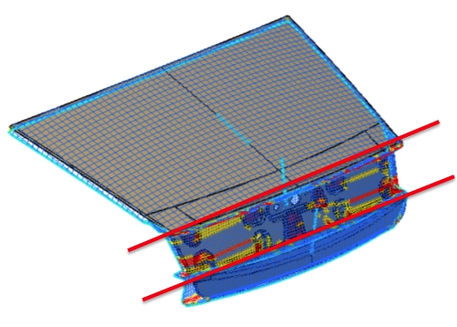 图为恒瑞研发人员对行李箱后盖进行铺覆性分析,设计裁切方案