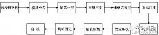 本研究主要针对CFRP 上车体结构设计及验证,因此研究过程中并未选择适用于批量生产的成型工艺,而是考虑制件质量和工艺可实现性,选择低温固化预浸料铺层的真空袋压成型工艺,以保证样件质量与制造可实现性的平衡( 见图7) 。
