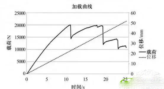 CFRP 上车体零部件顶压测试由天津汽车技术研究中心实施,试验采用台架的方式,以CFRP安装与金属框架工装的形式模仿CFRP 上车体在下车体上的安装状态进行测试,测试过程及载荷施加条件严格按照GB 26134—2010 进行,测试结果如图9 所示。