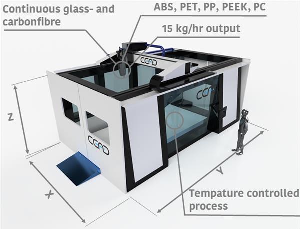 新款大型复合材料3D打印机:能打4米长,输出量15公斤/小时