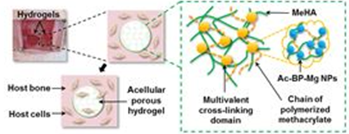 先,由于水凝胶有良好的物理化学性能和生物相容性,因此可以广泛用于许多临床应用。同时发现金属离子如Mg2 可以促进细胞粘附和分化,并刺激局部骨形成和生长。所以香港中文大学的研究小组将这两种材料结合在一起,创造了一种能够以可控的方式释放Mg2 的新型生物材料。