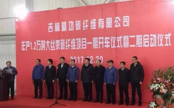 2017年12月20日,吉林化纤集团8000吨碳纤维大丝束碳化项目一期2000吨生产线试车成功,该条生产线是唯一的大丝束碳化生产线,装备水平、生产能力。该生产线拥有我国大的碳纤维碳化能力,它的建成投产,填补了我国大丝束碳纤维生产的空白,也必将加速推进碳纤维制品在风电、汽车轻量化、压力容器、海洋工程等产业用领域的应用,标志着我国向大丝束碳纤维生产迈出了有力的一步。