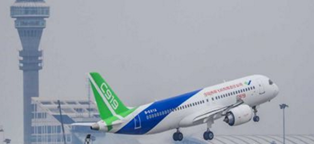 2017年5月5日,我国自行研制的架大型客机C919飞机从上海浦东机场成功起飞,开始它的次离地飞行。C919飞机从外形到内部布局,都由自己设计完成,它的研制历经7年。