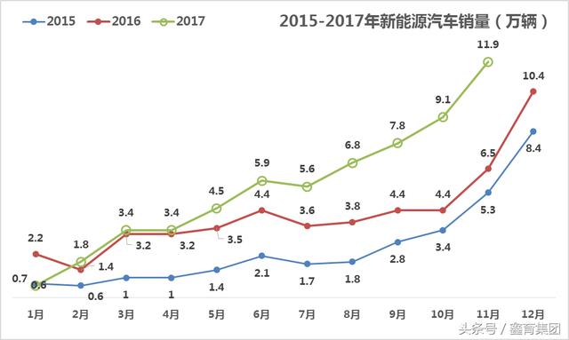 2015-2017新能源汽车销量对比