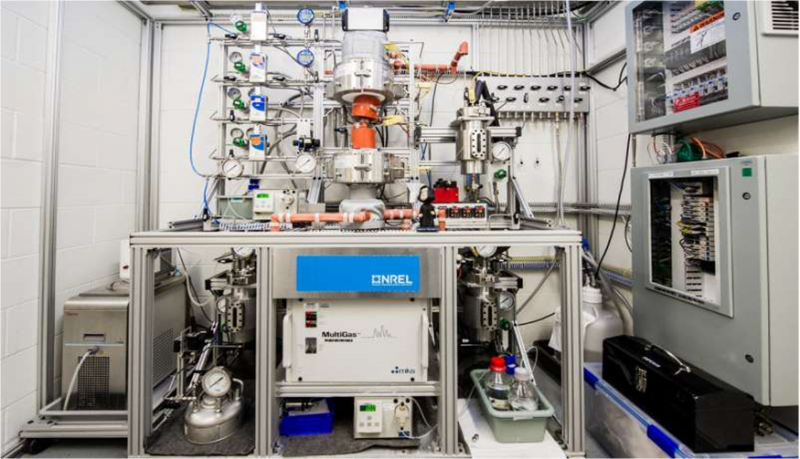 此图显示的催化反应器用于将化学中间体转化为丙烯腈。这项研究工作是可再生碳纤维结构组合的一部分。资料来源:Dennis Schroeder / NREL