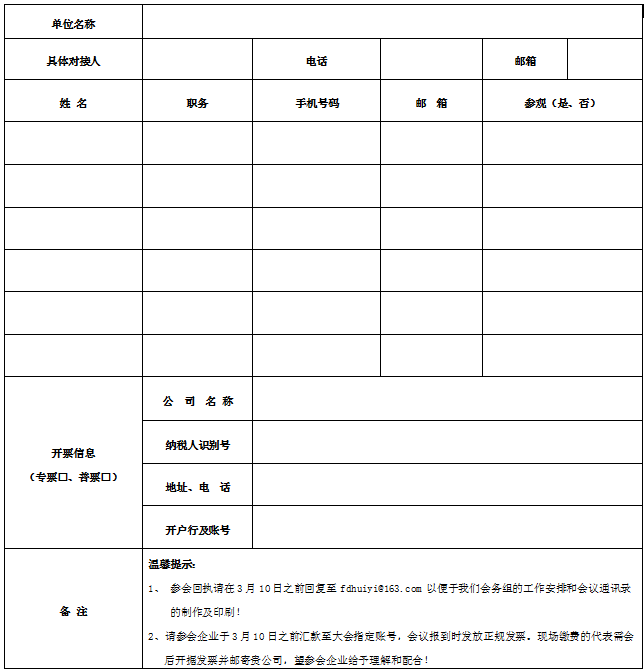第四届国际风电复合材料高峰论坛参会回执表