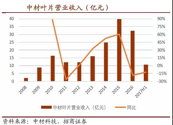 叶片营业收入有所波动,但总体上同比增速,下滑时幅度较小,上行时弹性较大,2015年营业收入曾达到40 亿元,净利润达到5亿元.